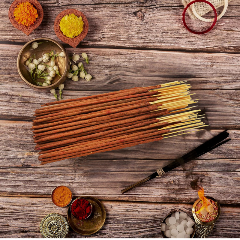Bhaktivyam Incense sticks also called agarbattis are fragranced sticks used from ancient period by people all over the world. The evolution of incense stick could be from the burning of aromatic woods in the primitive period. The purpose of burning agarbatti is to purify the bad air. The holy smoke prevents unwanted bad energy and bad spirit from entering home. The use of incense stick is recorded in Old Testament, the Vedas, and other ancient books. A good incense stick is made from natural ingredients like camphor, clove, sandalwood, kasturi manjal, saffron, sweet smelling flowers like rose, jasmine, green jasmine, oils of fragranced flowers, and aromatic woods. Weight : 300 GM (Each)